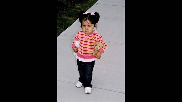 For a kid carrying two stuffed toys she looks kinda tough.Claudia Adl