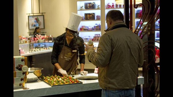 Chocolatier making strawberries so enticing, the ice cream is quickly forgotten! Photo taken Feb 7th.James Lazar