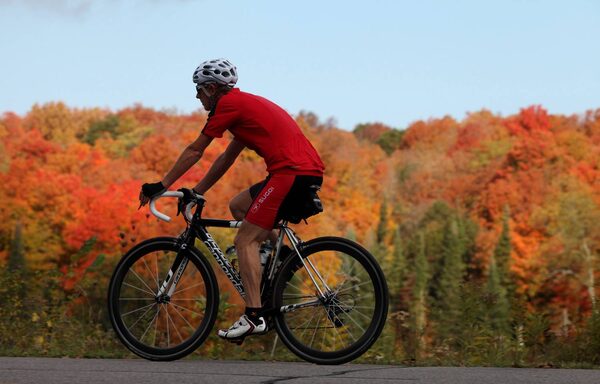 A cyclist rides past the fall colours in Gatineau Park October 1, 2013 in Gatineau, Quebec.The Globe and Mail