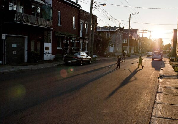 Christopher Johnstone of Montreal sent us this image of a family playing road hockey for our street photogrpahy assignment. The long shadows and great perspective place the reader there.