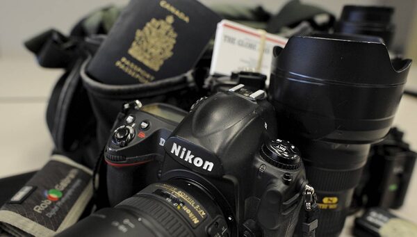Photos of the camera and gear bags I use day to day in my job as a photographer for the Globe and Mail. A Domke F2 ballistic nylon bag that carries my digital gear. A Nikon D3, 50 1.4, 85 1.4, 24-70, 70-200, a Think Tank pixel pocket with bunch of 4gb cf cards, a Nikon SB800 flash, 5 or 6 batteries for the camera, some meds, pens, leather notebook and an up to date passport. (Fred Lum/The Globe and Mail) DIGITAL IMAGEFred Lum/The Globe and Mail