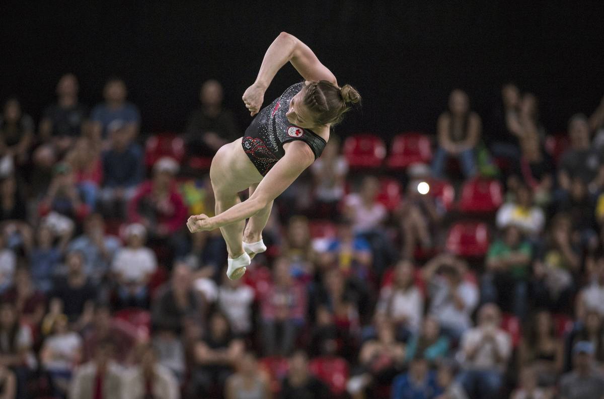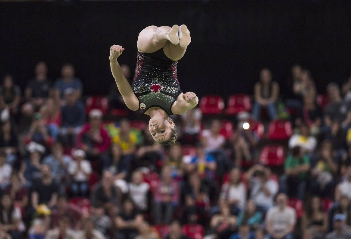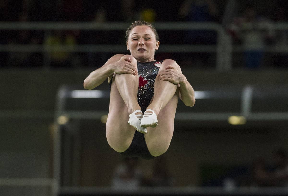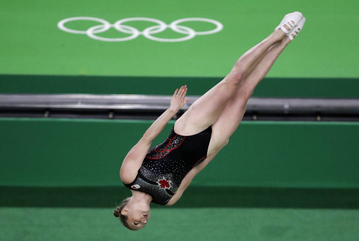 Canada's Rosie MacLennan performs during the women's trampoline final at the 2016 Summer Olympics in Rio de Janeiro. (Dmitri Lovetsky/AP Photo)