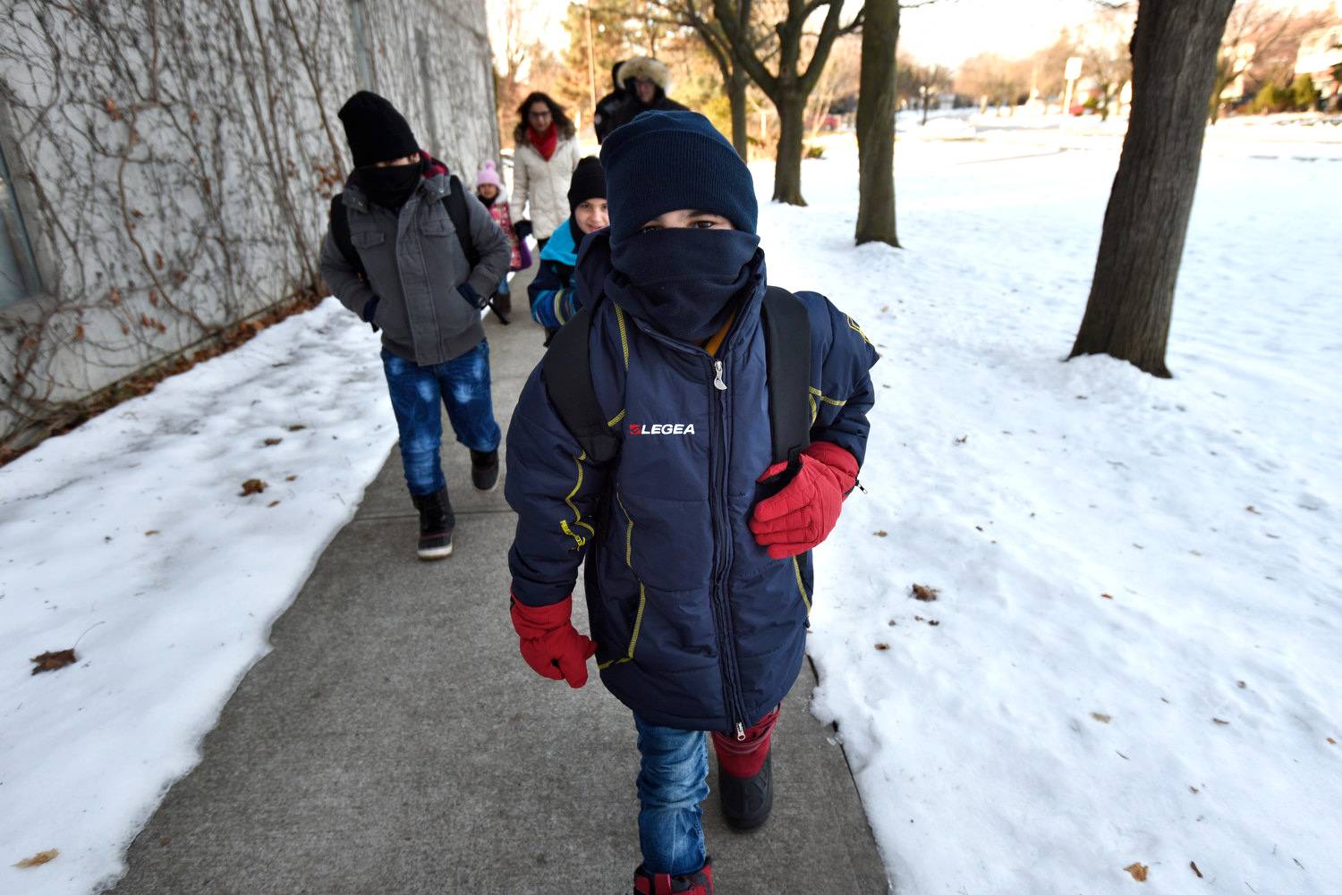 Today marked the first day of school for six Syrian refugee children after arriving in Canada in December. The family fled Homs, Syria five years ago and had been living in a refugee camp in Lebanon before embarking on their trip to Canada. Four of the eight children were attending Iroquois Junior Public School today.