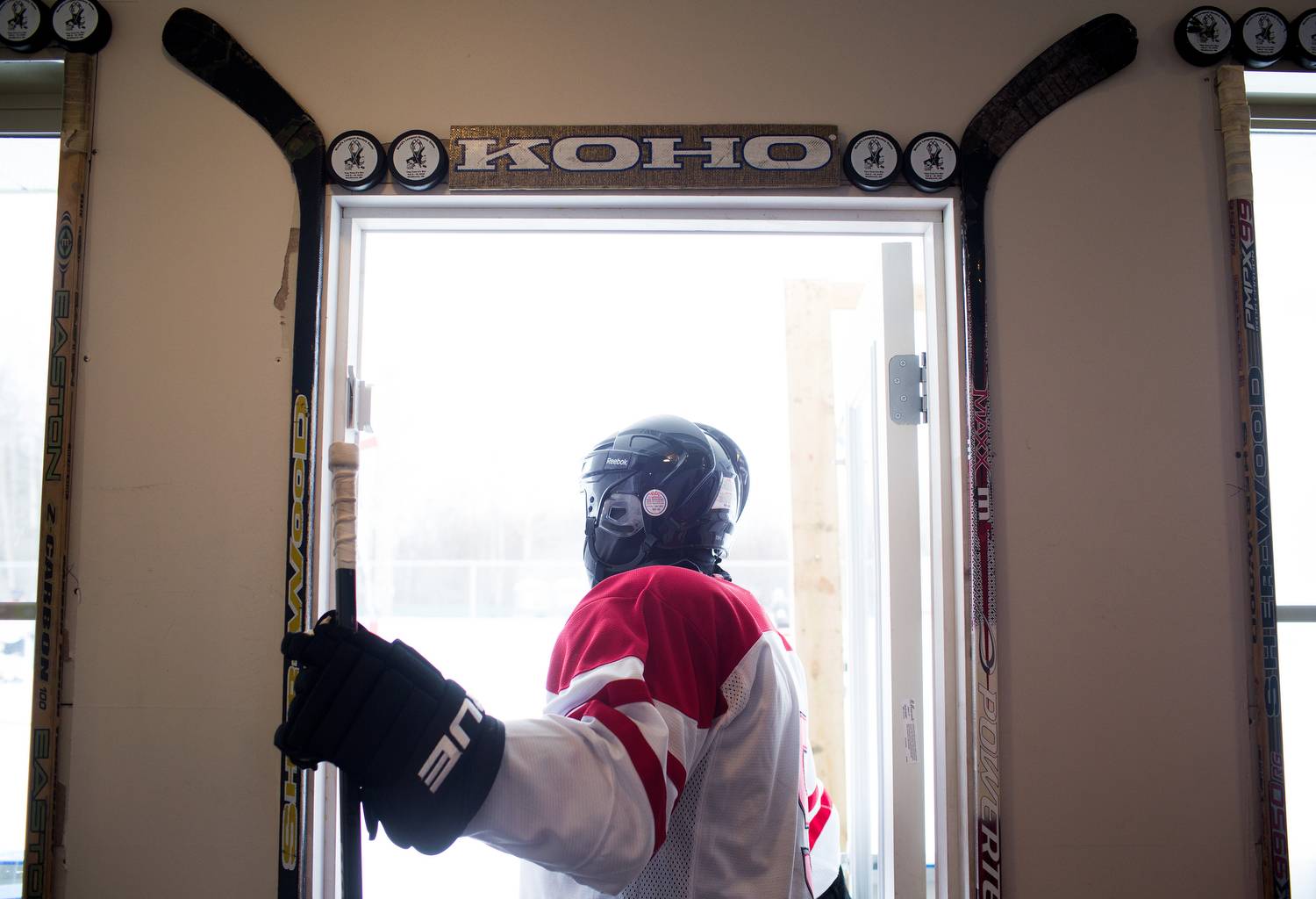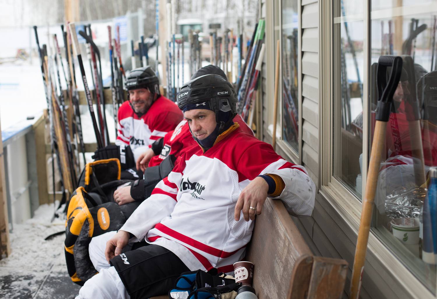 Former NHL player Janne Niinimaa, left, suits up to play.