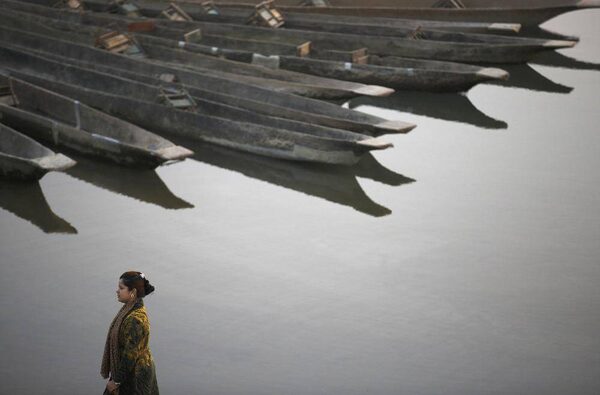Boats are lined up as a woman stands on the bank of Rapti River at Sauraha in Chitwan, south of Kathmandu.Navesh Chitrakar/Reuters