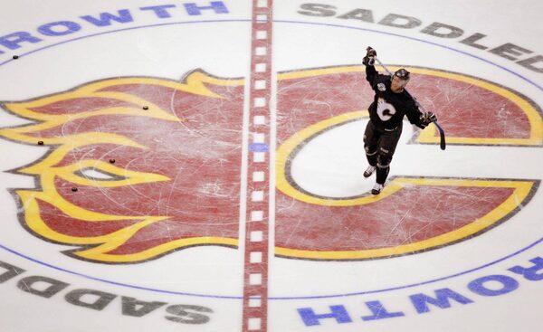 The Flames logo at the Saddledome in Calgary on Friday, June 4, 2004Jeff McIntosh/The Canadian Press