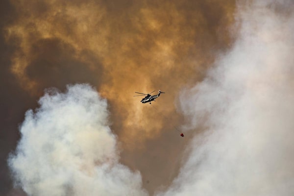 A helicopter battles a widlfire in Fort McMurray, Alta., on Wednesday.JASON FRANSON/The Canadian Press