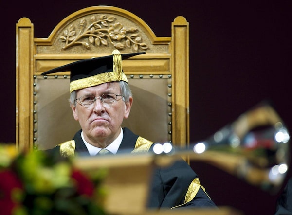 Jim Dinning, the University of Calgary's former chancellor, looks on during fall convocation ceremonies in Calgary on Friday, Nov. 12, 2010.Jeff McIntosh/The Canadian Press