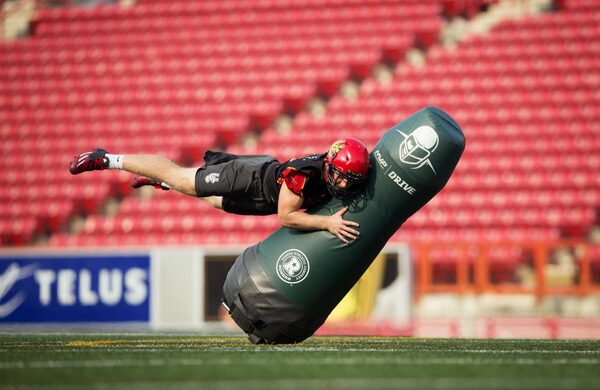 "What's important is how healthy you are coming out of your own practices," Dinos head coach Wayne Harris says. "Any new idea to reduce contact is good for our game, good for our team."