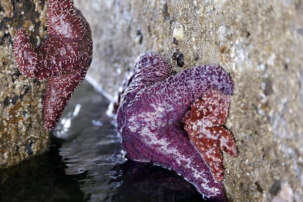 In scattered sites along the Pacific Coast, researchers and others have reported seeing hundreds of juvenile starfish. The discovery has buoyed hopes for a potential comeback from a wasting disease that has caused millions of purple, red and orange starfish, or sea stars, to curl up, grow lesions, lose limbs and disintegrate into a pile of goo.