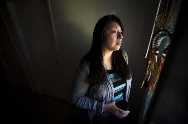 Chrystal Tabobandung, 36, a mom of Ojibwa descent is pictured in her apartment in Surrey, British Columbia on February 17, 2015.Ben Nelms