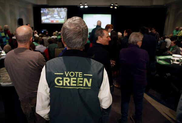 Green party supporters watch as results come in from election night at the Delta Ocean Pointe on election night in Victoria, B.C., on Tuesday, May 9, 2017.CHAD HIPOLITO/The Canadian Press