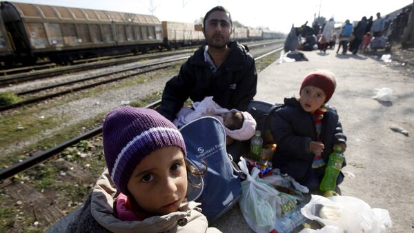 A man with children, refugees from Syria, rest at the transit centre for refugees near the village of Tabanovce, in northern Macedonia, before continuing their trip to the border with Serbia, on Friday, Nov. 20, 2015. The Trudeau government has promised to accept 25,000 refugees by year’s end, and about 3,000 are expected in B.C.Boris Grdanoski/The Associated Press