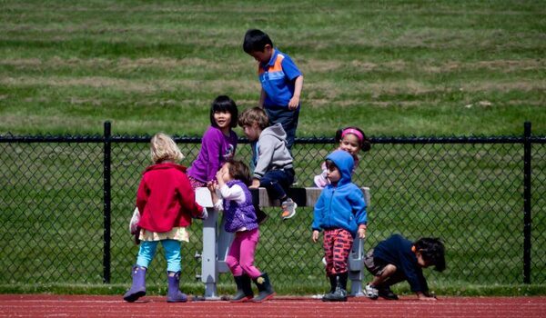 Children play on a hurdle at the Rashpal Dhillon Track & Field Oval at the University of British Columbia in Vancouver in June 2014.Darryl Dyck/The Globe and Mail