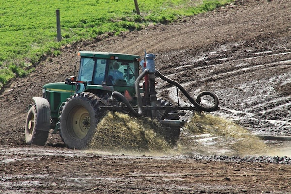 A farmer spreads manure on a field in the Township of Spallumcheen, North Okanagan. Local residents are concerned the spreading of manure is contaminating the local aquifer.Al Price