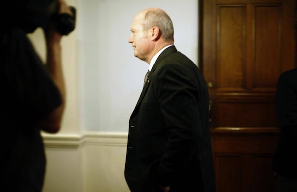 B.C. Finance Minister Mike de Jong leaves B.C. Legislature after delivering the budget speech in Victoria, B.C., February 19, 2013.CHAD HIPOLITO/The Globe and Mail