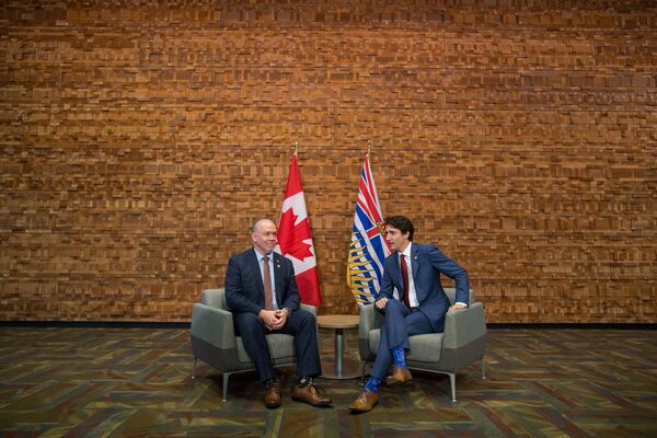 B.C. Premier John Horgan, left, and Prime Minister Justin Trudeau talk in Vancouver on Nov. 16, 2017.DARRYL DYCK/The Canadian Press