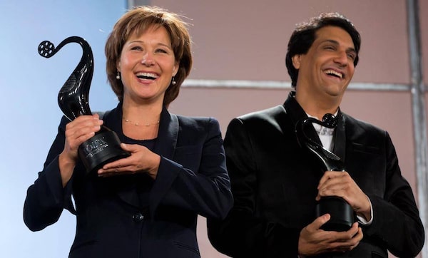 B.C. Premier Christy Clark holds the trophy that will be awarded to winners at the Times of India Film Awards, to be held in Vancouver in April.Darryl Dyck/The Canadian Press
