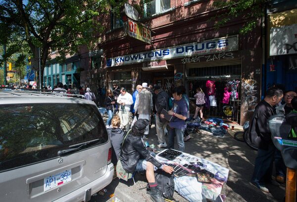 A man sells jewellery outside Knowltons Drug Store on East Hastings Street in Vancouver on Sunday.DARRYL DYCK/The Globe and Mail