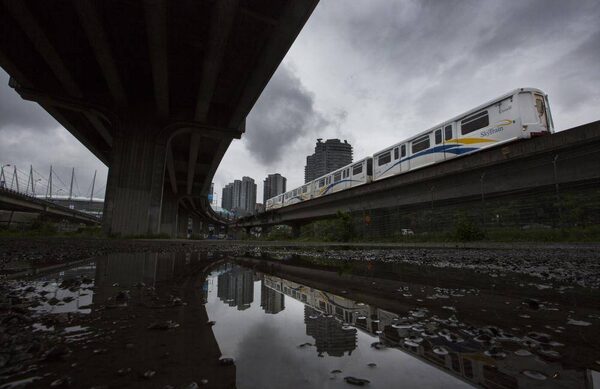 A sky train on the Expo Line makes its way past the Dunsmuir Viaduct in Vancouver May 29, 2013.John Lehmann/The Globe and Mail
