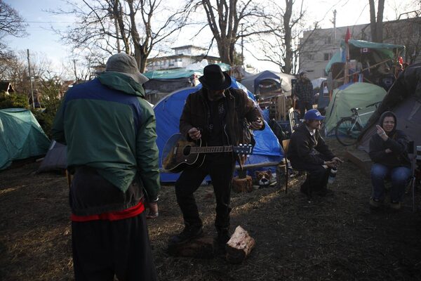 Residents play music and socialize at ahomeless camp in Victoria, B.C., February 9, 2016.CHAD HIPOLITO/The Globe and Mail