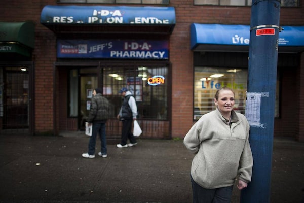 Laura Shaver, president of the B.C. Association of People on Methadone and a methadone user herself, is photographed in 2013 outside a pharmacy on East Hastings Street in Vancouver that supplies patients with methadone.Rafal Gerszak/The Globe and Mail