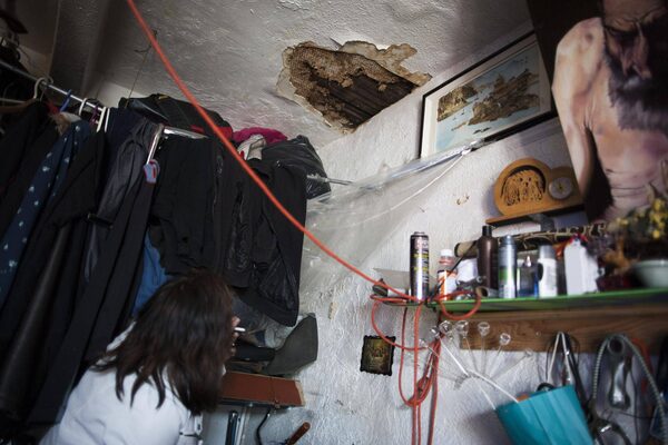 A resident of the Balmoral, a single-room occupancy hotel, shows the water damage in her room on June 1.Rafal Gerszak/The Globe and Mail