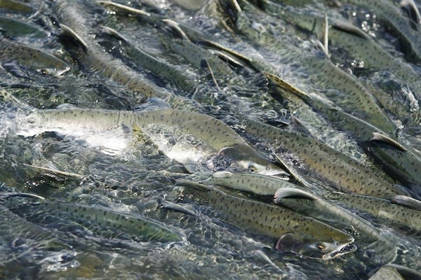 Thousands of pink salmon swim upstream to spawn in Valdez, Alaska, in August 2008.Lucas Jackson/Reuters