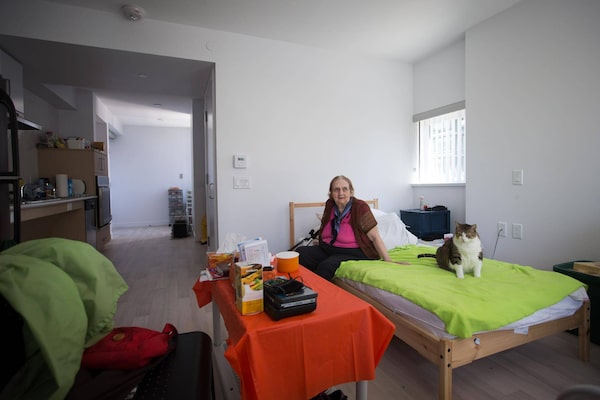 Zona Hudson, 79, sits with her cat Misty at her home at the new Jubilee House tower on Richards Street in downtown Vancouver, B.C., on Thursday August 25, 2016.DARRYL DYCK/The Globe and Mail