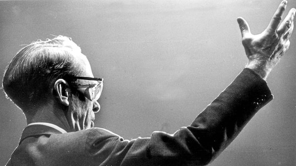 Tommy Douglas, leader of the New Democratic Party, speaks at an NDP rally at Toronto's Maple Leaf Gardens on Nov. 4, 1965.Boris Spremo/The Globe and Mail