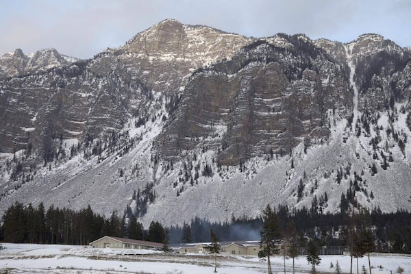 A school is seen at the base of a giant rock face in the polygamous community of Bountiful, B.C.Jonathan Hayward/The Canadian Press