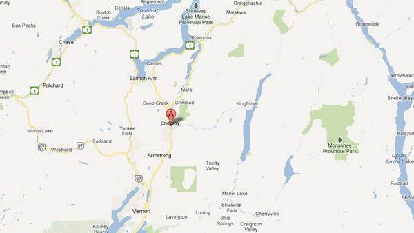 A screengrab shows Enderby, B.C. One volunteer firefighter has been killed and another has been injured in an explosion and fire in Enderby on December 29, 2011.
