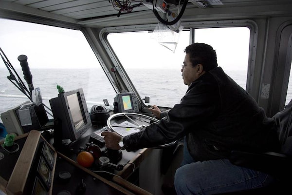 Captain Dean Robinson guides his boat through Hecate Strait near Prince Rupert, B.C., on Dec. 11, 2012. Hecate Strait is where tankers serving the Northern Gateway pipeline would be navigating.Jonathan Hayward/The Canadian Press