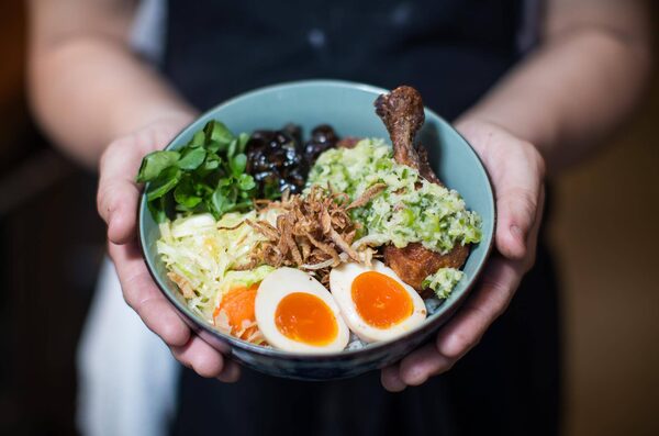 Chef Felix Zhou presents the chicken rice bowl at the Heritage Asian EateryBen Nelms/The Globe and Mail