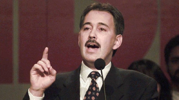 Glen Clark addresses the crowd at his party's policy convention in Vancouver, Mar.1 1997.Arlen Redekop/ The Canadian Press