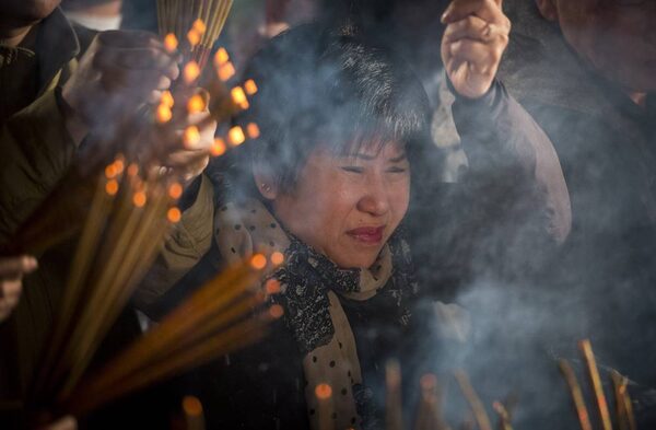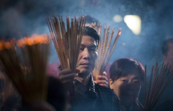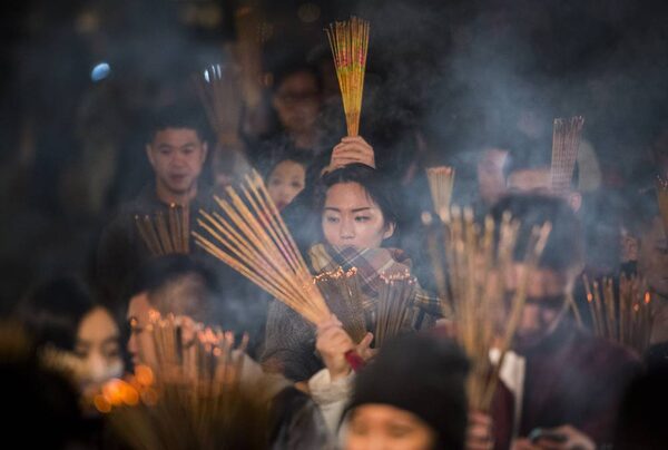 Worshipers gather to celebrate the new year at the International Buddhist Temple in Richmond, B.C. Hundreds light joss (incense) sticks and pray for a prosperous Year of the Sheep.