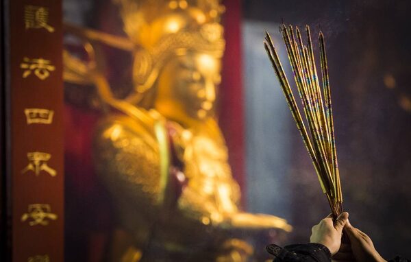 Joss sticks are held before a Maitreya Buddha, also known as Future Buddha statue.John Lehmann/The Globe and Mail