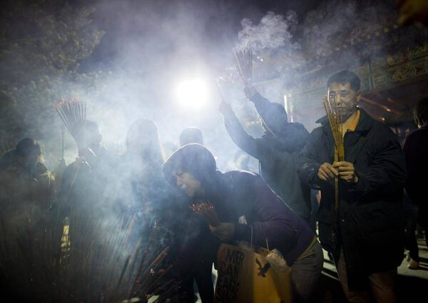 Just after midnight, prayers for a happy and prosperous new year were said with with joss sticks (incense sticks).John Lehmann/The Globe and Mail