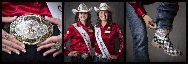 Alexis Forseille, left, the Williams Lake Stampede Queen, shows off her belt and Terris Billyboy, right, the 2012 Williams Lake Stampede Princess, shows off her cowboy boots in this photographic triptych taken at the 95th Annual Falkland Stampede in Falkland, B.C., on May 18, 2013.John Lehmann/The Globe and Mail
