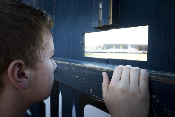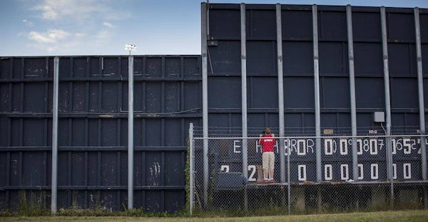 Carl Steffens, 15, is responsible for changing numbers on the scoreboard, the same one that graced the left-centre field wall when the stadium opened in 1951. Carl works in a bit of obscurity; no one can really see him as he changes the numbers from behind the scoreboard.John Lehmann/The Globe and Mail