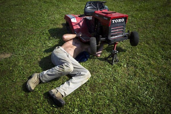 Dan McDonald works on his lawn mower in between heats.Ben Nelms/The Globe and Mail