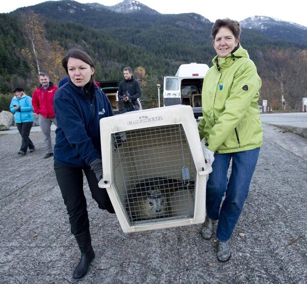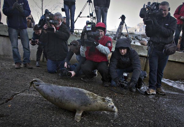 The seals were transported in dog kennels to the ocean shore in Porteau Cove, on the Sea to Sky Highway north of Vancouver. After staff opened the kennel doors, the wide-eyed, speckled pups looked around at their entourage for a few minutes before they bounced and squirmed their way into the water.Andy Clark/Reuters