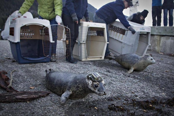 The Vancouver Aquarium has released seven rescued harbour seal pups back into the wild, with plans to track them as they return to the ocean. Five of the pups were equipped with satellite-linked transmitters that will provide the Marine Mammal Rescue Centre with information about where the seals go and how they do after returning to the wild.Jonathan Hayward/The Canadian Press