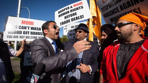 "Modi is a war criminal," Mr. Alam said. "He had been banned previously by other countries from entering into the state, and here we are Canada welcoming him, giving him the red carpet treatment, putting our economic interests before human rights and justice."