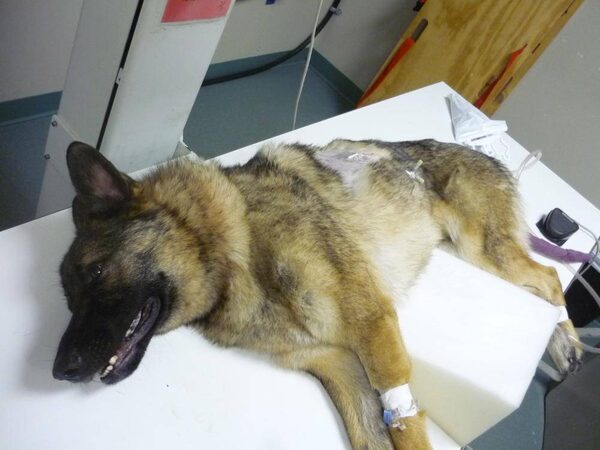 Captain the German shepherd is shown in a handout photo being treated at an animal hospital. He did not survive.The Canadian Press