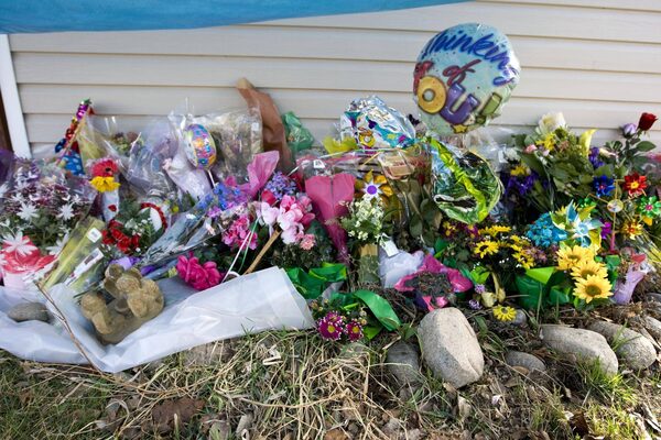 Flowers outside the Schoenborn home in Merritt, B.C. Allan Schoenborn’s horrific crime was pushed back into the national spotlight when Prime Minister Stephen Harper used the case in 2013 to bolster amendments to the Criminal Code.JOHN LEHMANN/The Globe and Mail