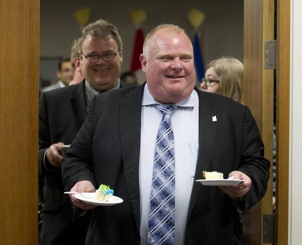 Mayor Rob Ford walks out of his office at City Hall in Toronto on May 28, 2013, with an offering of birthday cake for the media. It was Mr. Ford’s 44th birthday.Peter Power/The Globe and Mail