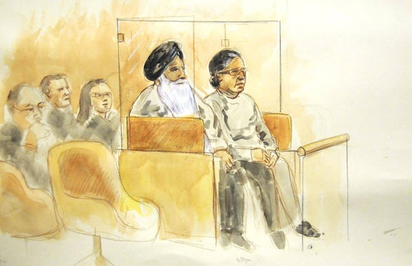 67-year-old Surjit Badesha and 63-year-old Malkit Sidhu are seen in this artist impression at B.C. Supreme Court.Sheila Allan