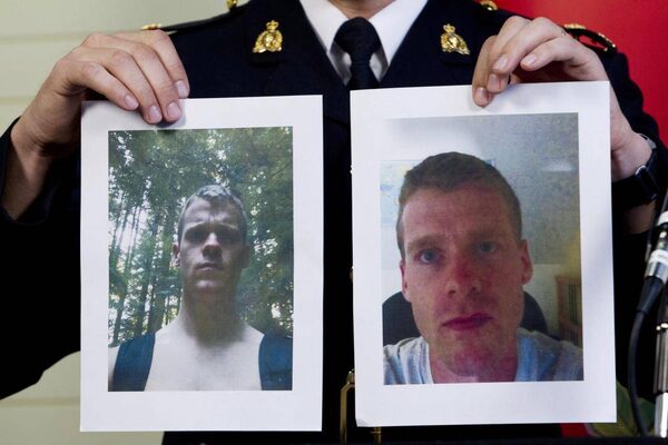 RCMP Insp. Tim Shields holds up photos of Angus David Mitchell during a news conference in Burnaby, B.C. Wednesday, May 30, 2012.JONATHAN HAYWARD/The Canadian Press