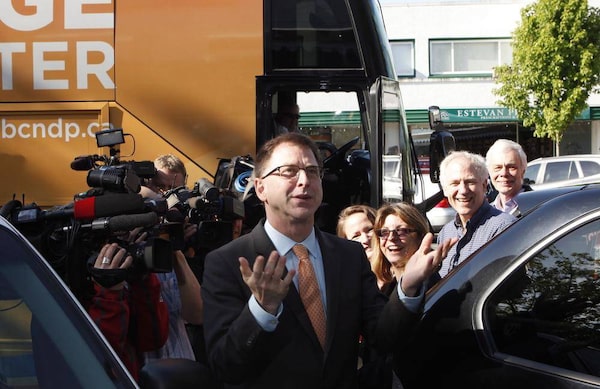 B.C. NDP Leader Adrian Dix meets with the NDP’s candidate for Oak Bay-Gordon Head Jessica Van der Veen and supporters at the Village Cafe in Victoria’s Oak Bay neighbourhood on May 10, 2013.Chad Hipolito/The Canadian Press